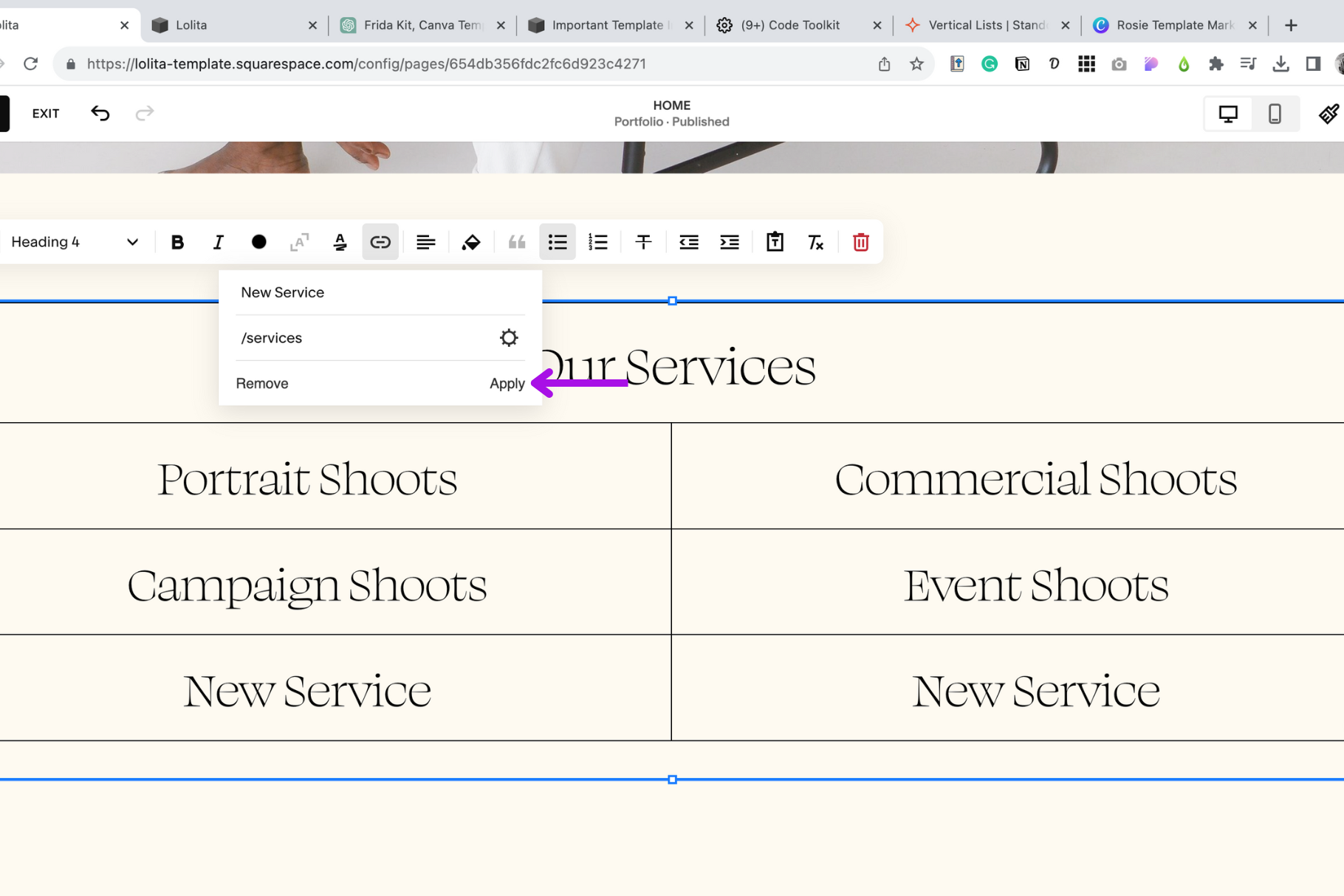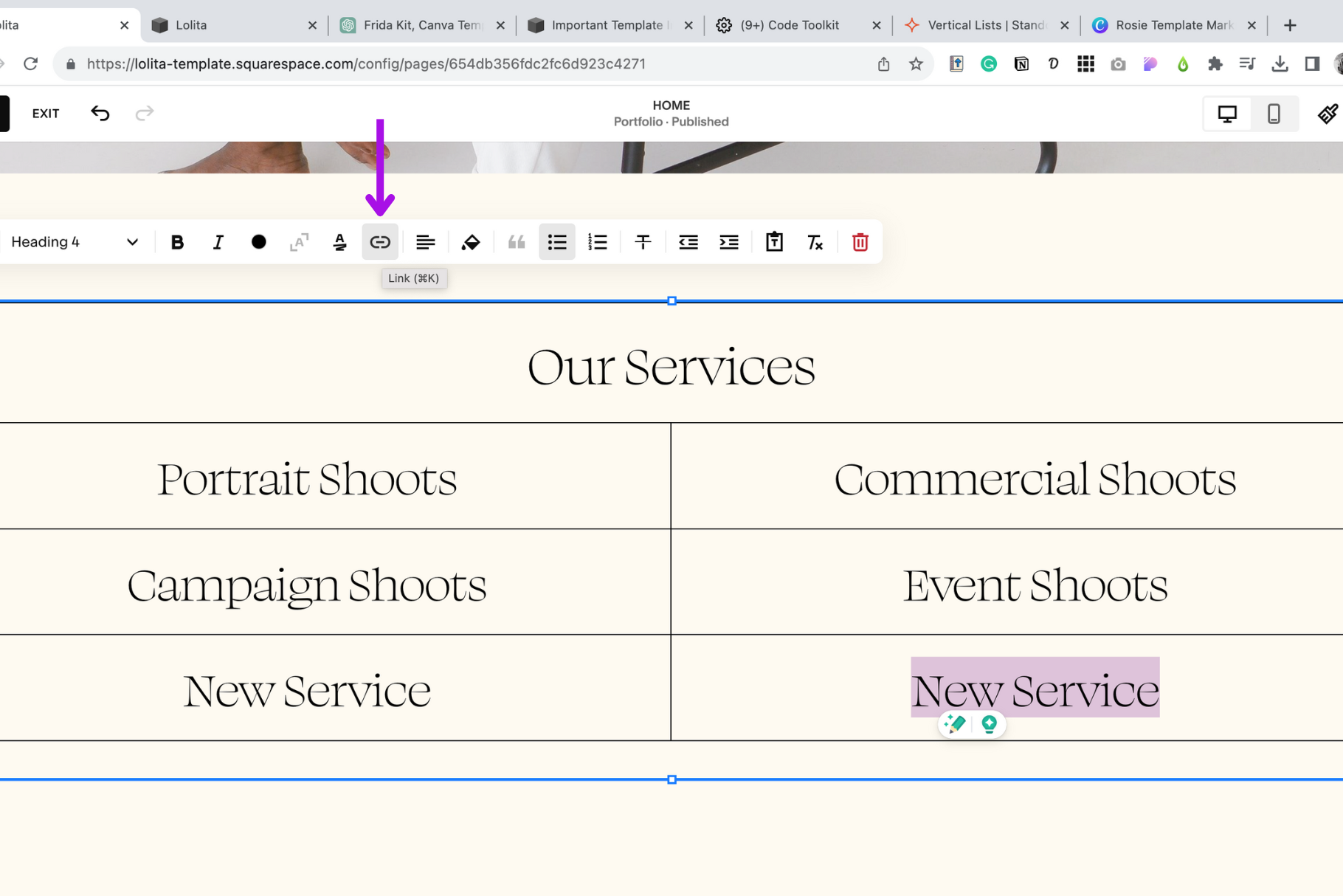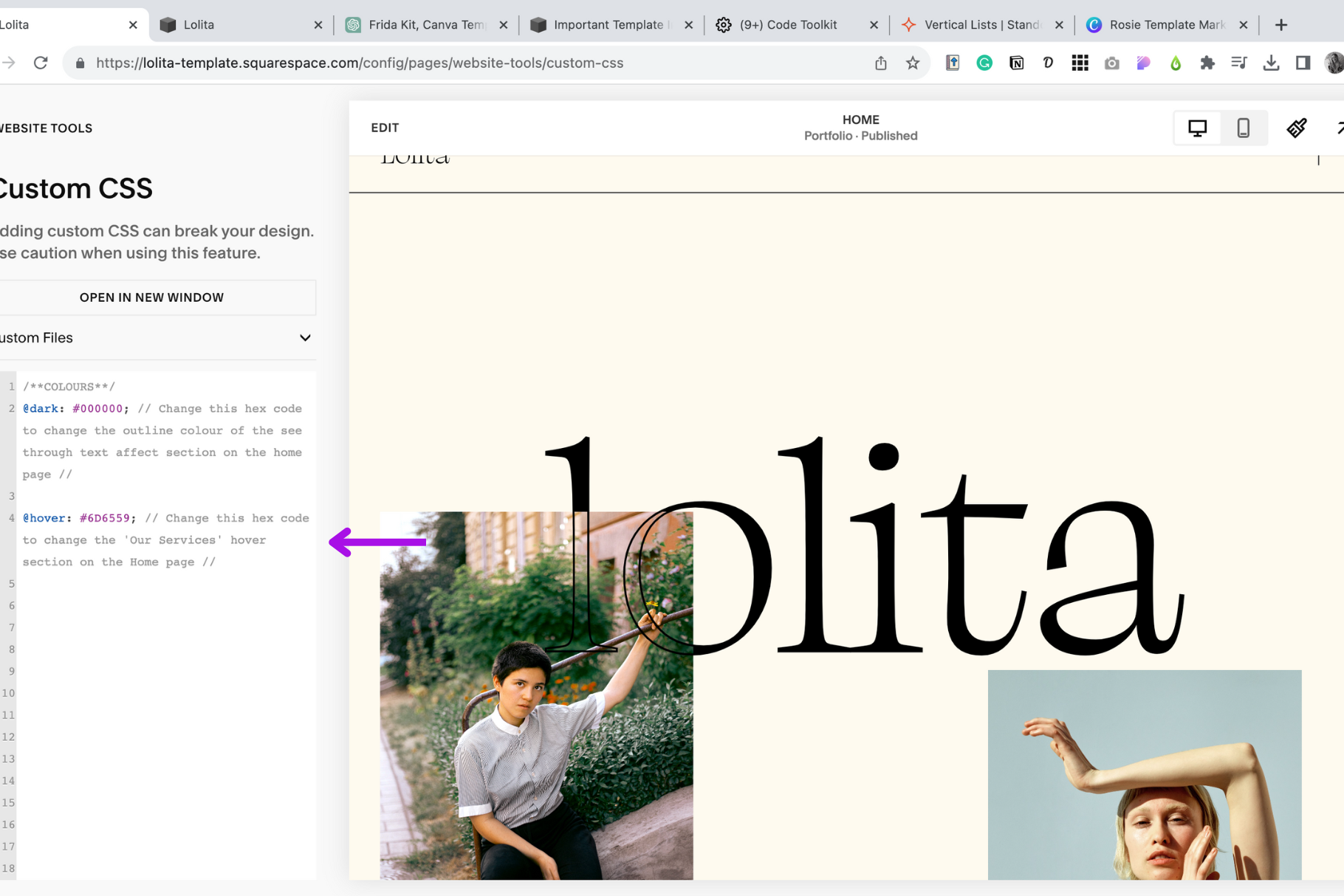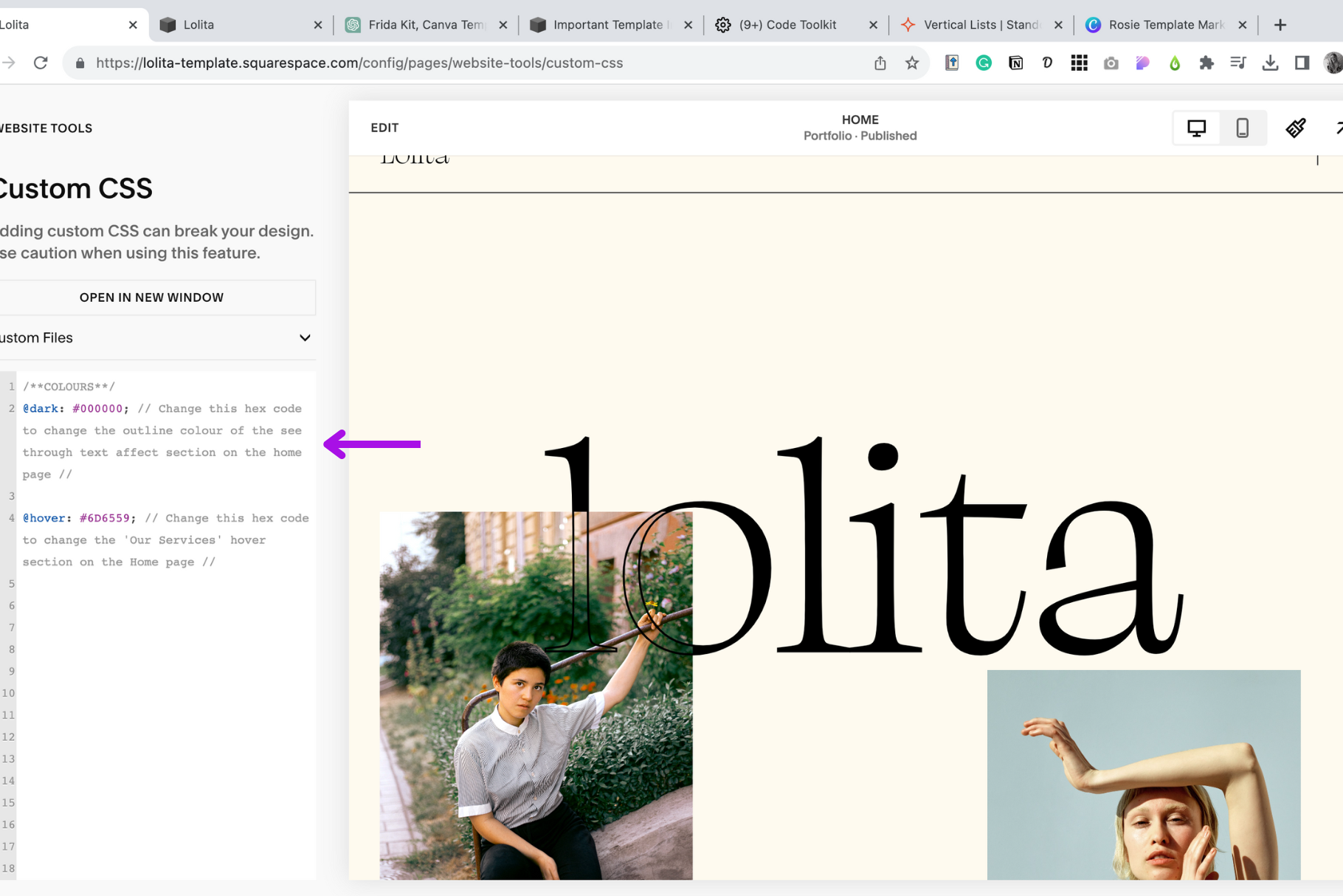 Open your Squarespace website editor.