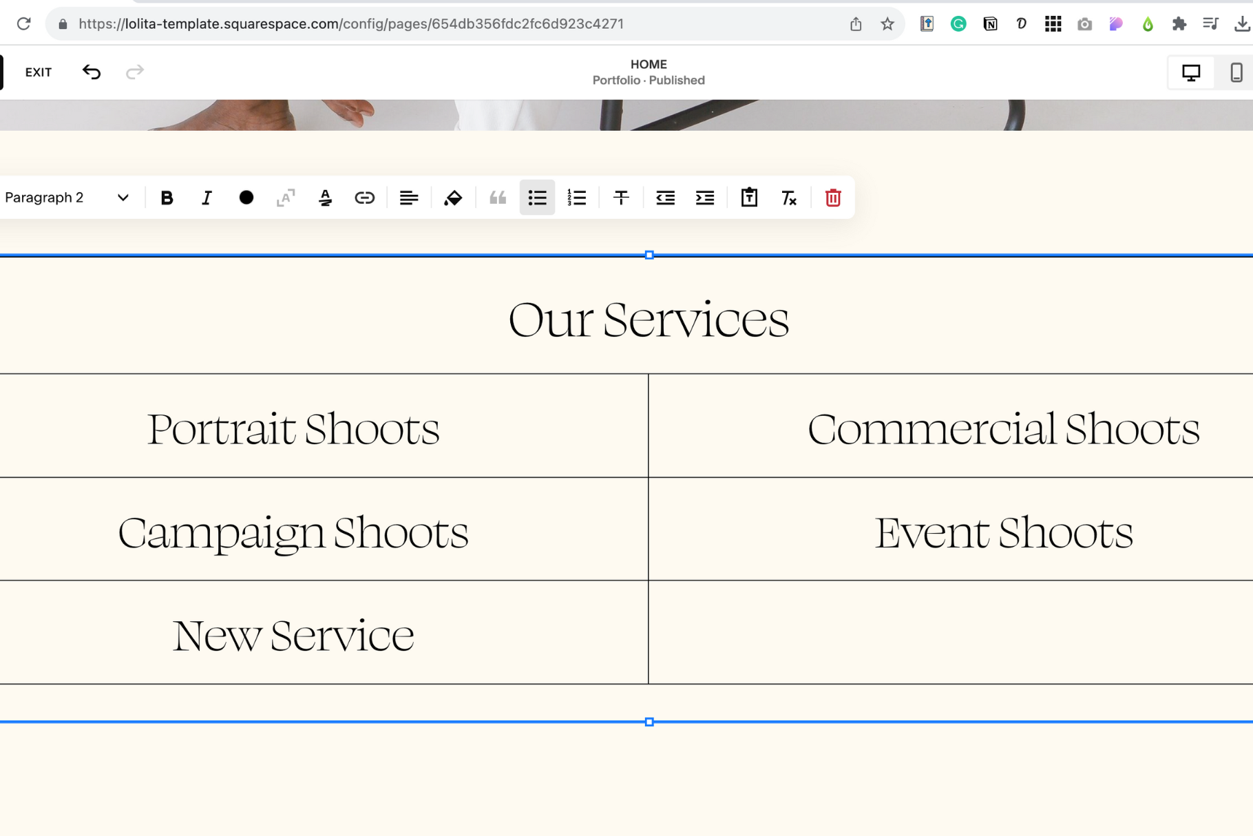 Place your cursor on the last service item, press "Enter" on your keyboard, and a new line will appear.